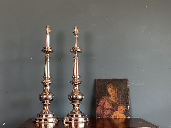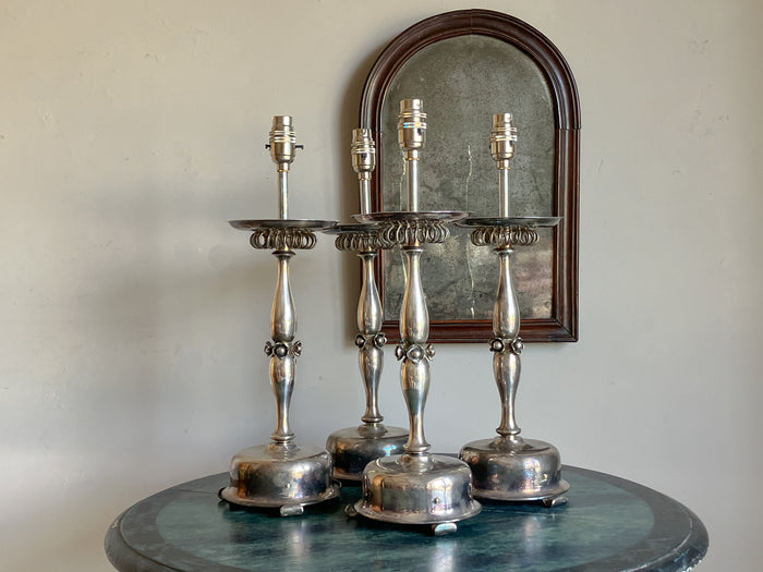 Early 20th Century Silver Pricket Candlesticks, now lamps